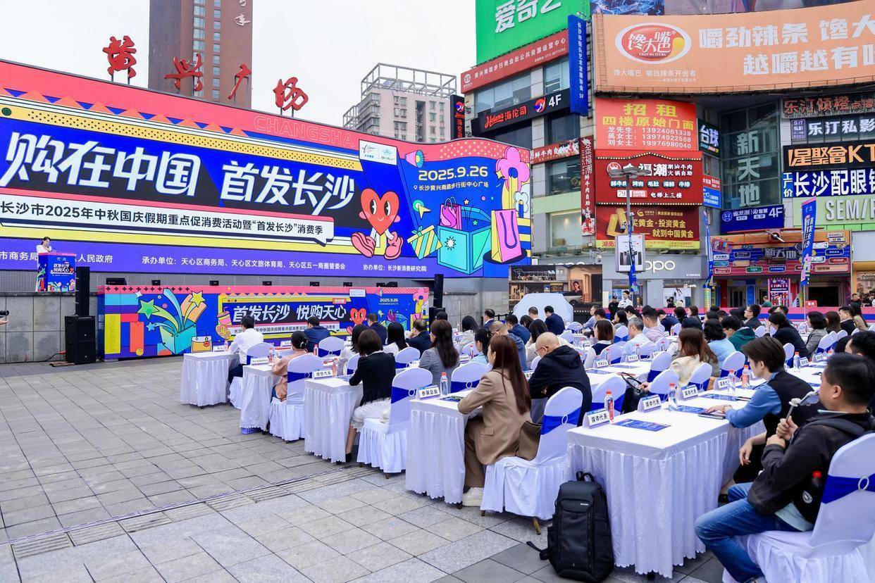 9月26日上午,2025年中秋国庆假期重点促消费活动暨“首发长沙”消费季启动仪式在长沙黄兴南路步行街中心广场举行。此次活动以“首发长沙・悦购天心”为主题,活动现场发布长沙市中秋国庆假期六大促消费主题活动,活动包含“首发长沙”消费季、汽车购车抽奖、票根经济优惠、金融助惠等板块。