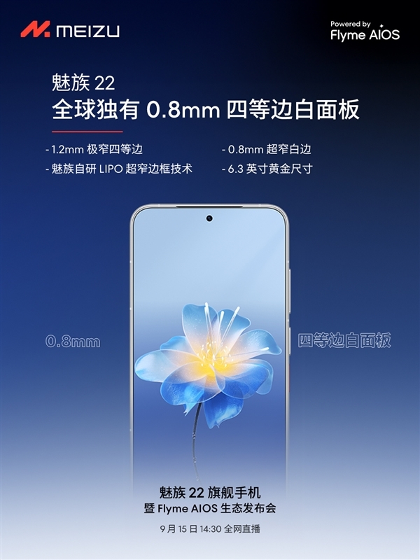快科技9月15日消息,魅族22延期两次之后,终于要在今天14:30正式发布。